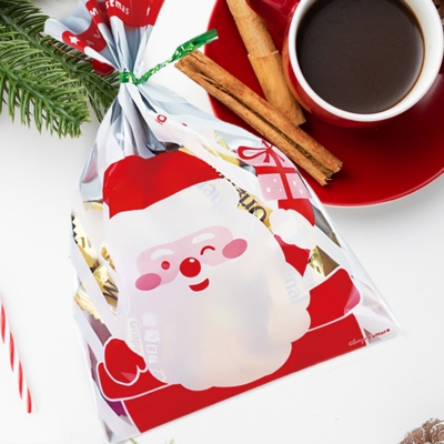 Christmas Candy Gift Bag with Gold Twist Tie (Large Size)/Cookie Packaging Bag/Package Bag/Party Favor Bag/4 Pcs
