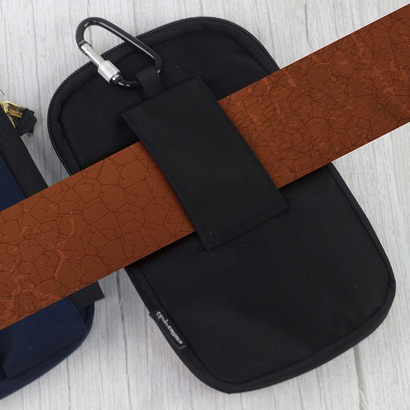 3-way use. The backside with a screw-locking carabiner can be hanged onto your waist or backpack and with a belt loops can be inserted into your waist belt. Two sides of the bag with 2 D-rings can go with a shoulder strap.