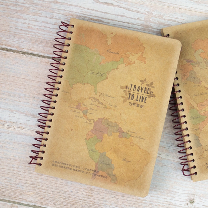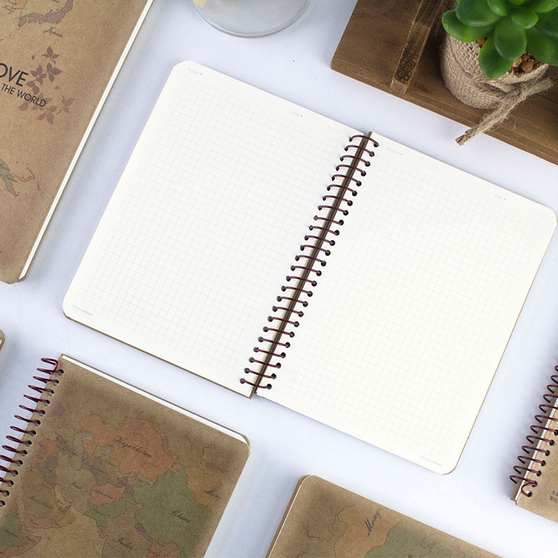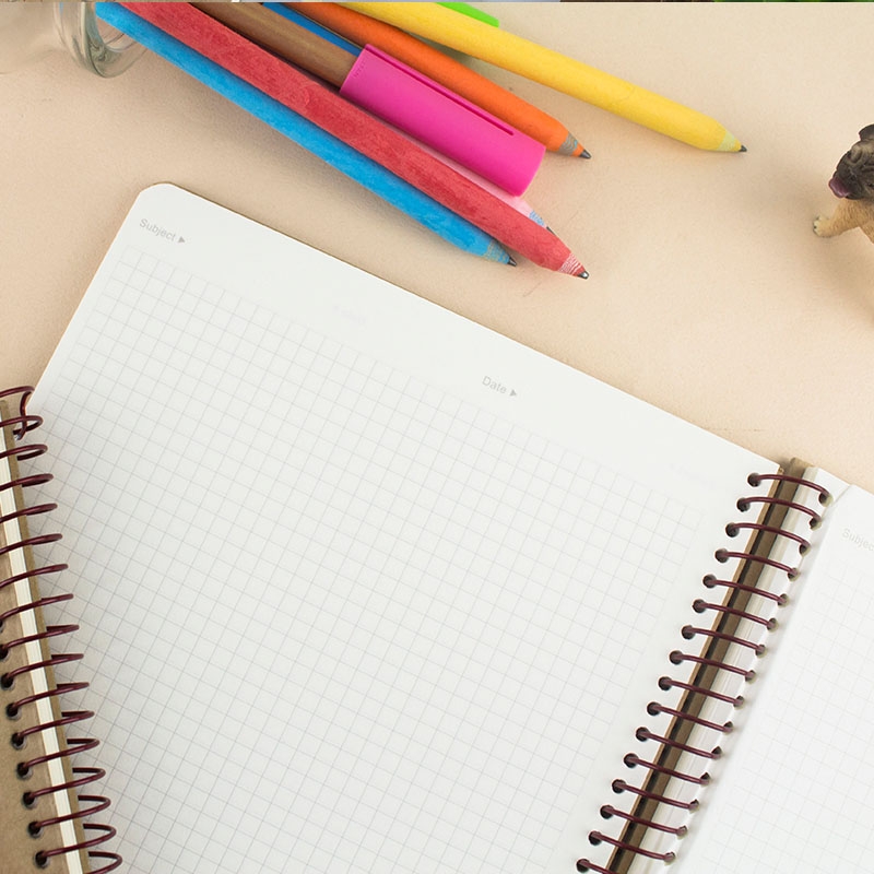 A6 Kraft Cover Wirebound Recycled Paper Notebook (Grid/Squared/70 gsm)/80 Sheets
