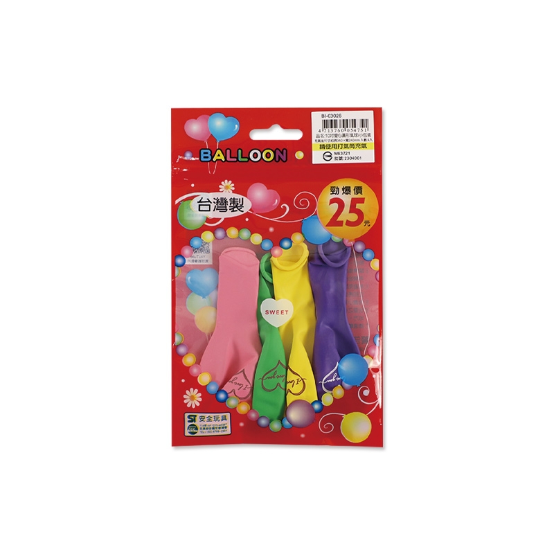 Taiwan Made 10 Inch Smiley Face Multicolor Round Natural Latex Balloon/Party Balloon/4 Pcs