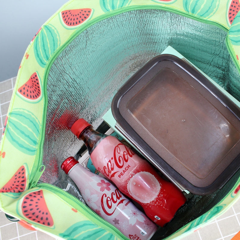Large capacity for storing more items such as lunch boxs, fruits and drinks.