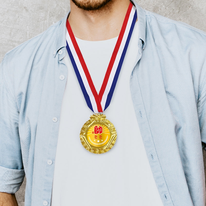 The middle of the medal is blank. Attaches 2 stickers which are printed with the title of prizes. You can chose the title you need or make your own title freely.