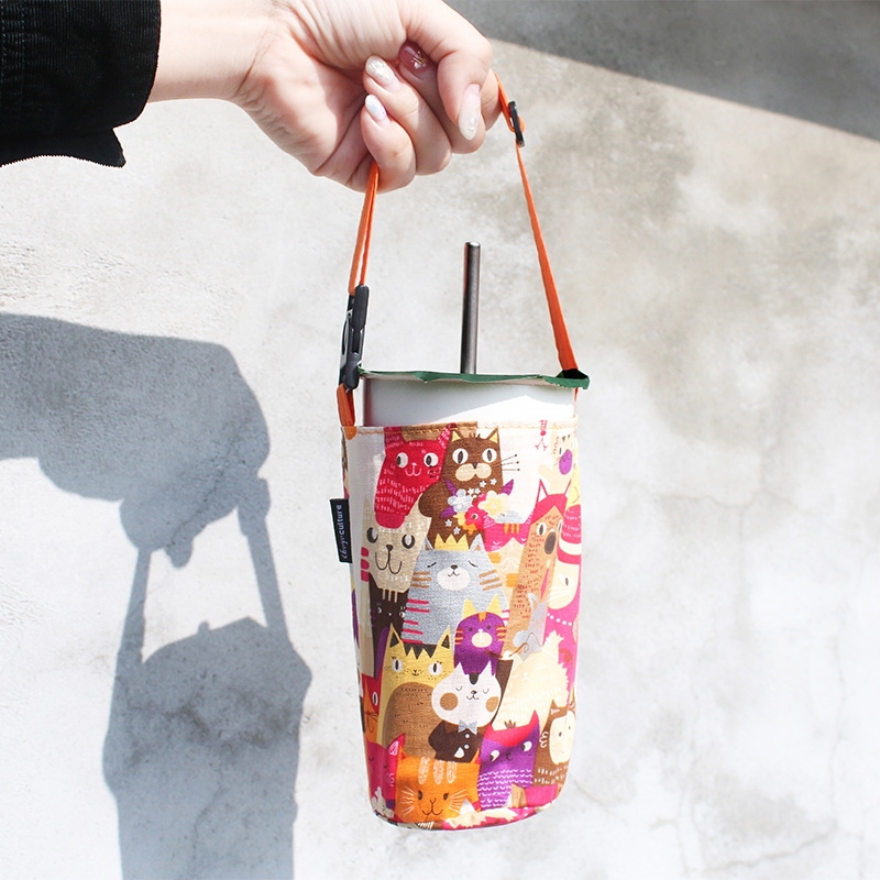 Taiwan Made Fabric Adjustable Handle Coffee Cup Beverage Bag/Reusable Eco-Friendly Cup Sleeve/Portable Cup Bag
