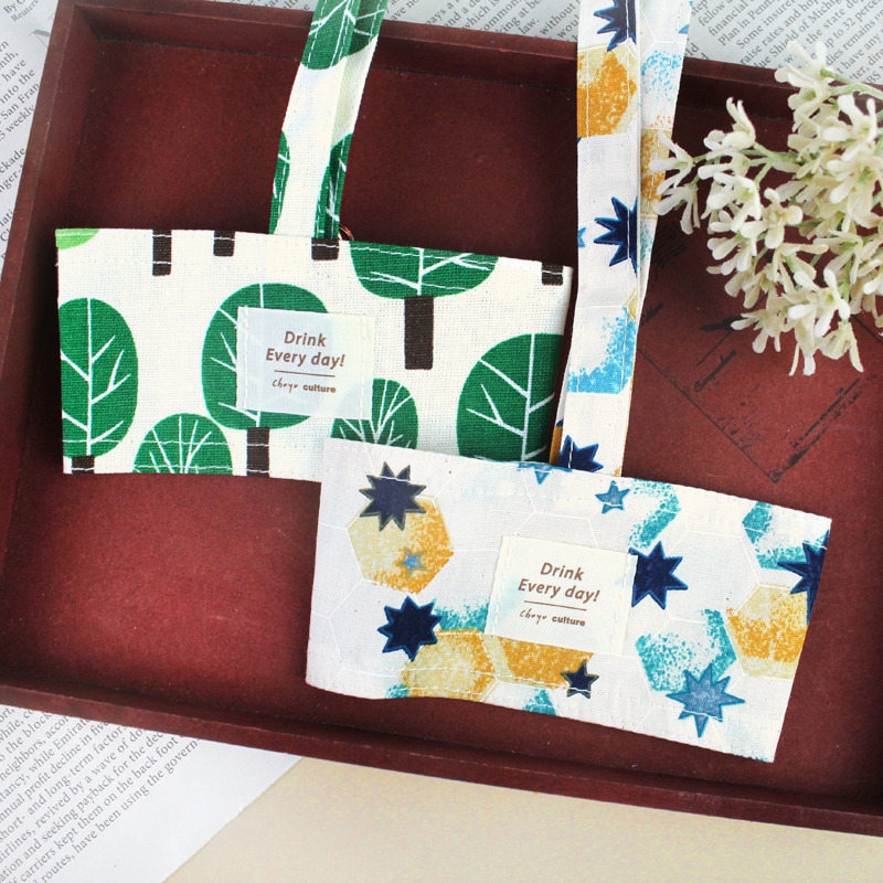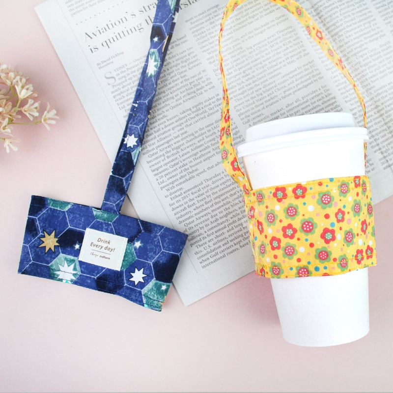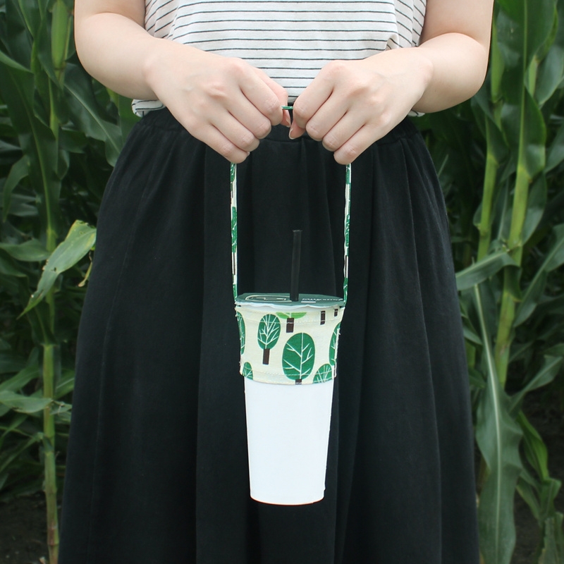 Taiwan Made Fabric Cup Sleeve Beverage Bag/Adjustable Cup Circumference/Reusable Eco-Friendly Portable Cup Bag