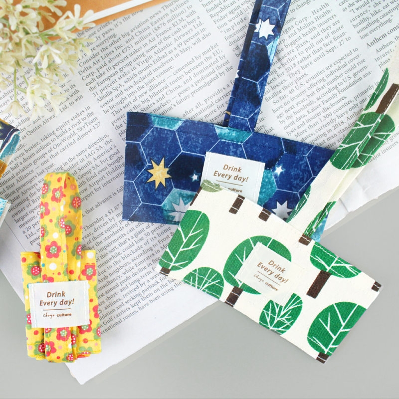 Taiwan Floral Fabric Double-cup Hand Carry Bag/Plastic Reduction Enviornmental-friendly Cup/Berverage Cup(01-04)