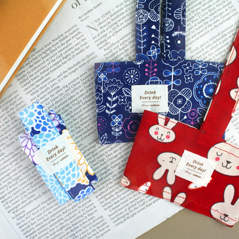 Taiwan Made Fabric Cup Sleeve Beverage Bag/Adjustable Cup Circumference/Reusable Eco-Friendly Portable Cup Bag
