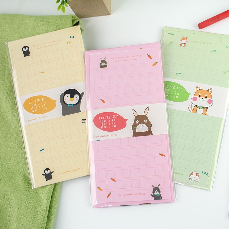 The set contains 2 envelopes and 4 sheets of letter paper.