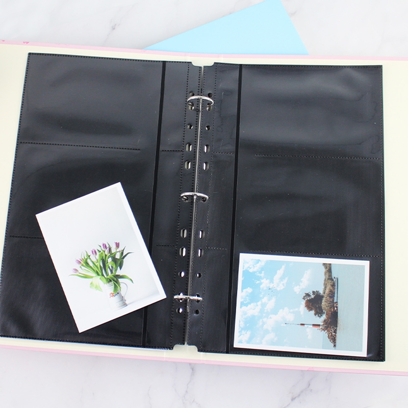 The album contains 8 black refill sheets. 3 pockets per page. Each pocket is sized 10.2 x 15 cm. Can hold 48 4"x6" photos or postcards.
