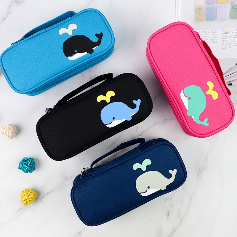 Portable Double Layer Pen Case/Pencil Case/Pencil Bag/Stationery Organizer-Whale