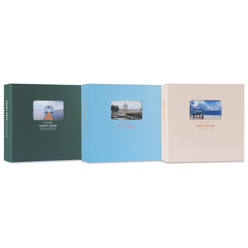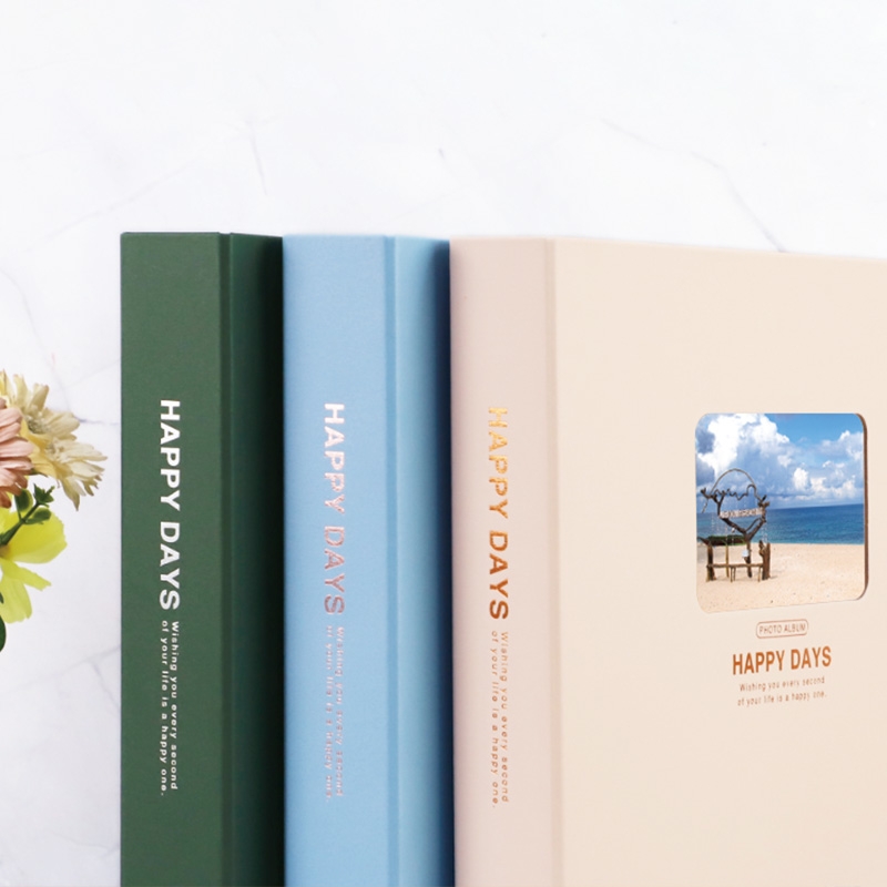 - The front cover is printed with delicate foil stamping and features a window for replaceable photos.