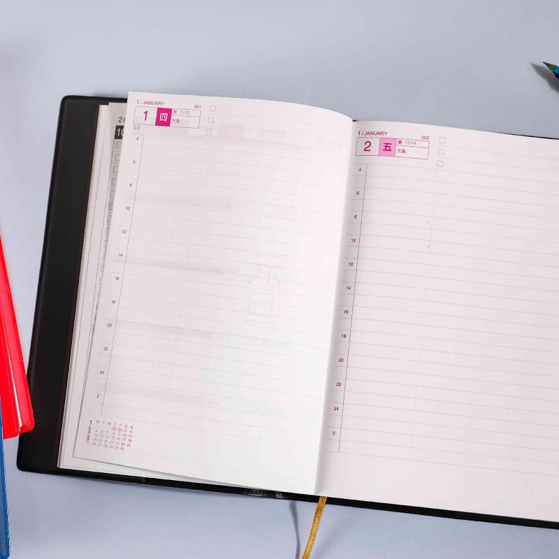 - The daily view diary can record up to 365 days, including 2 annual calendars, a year schedule, a monthly planner for 13 months, a daily view planner with ruled paper, note pages and other fuctional pages.