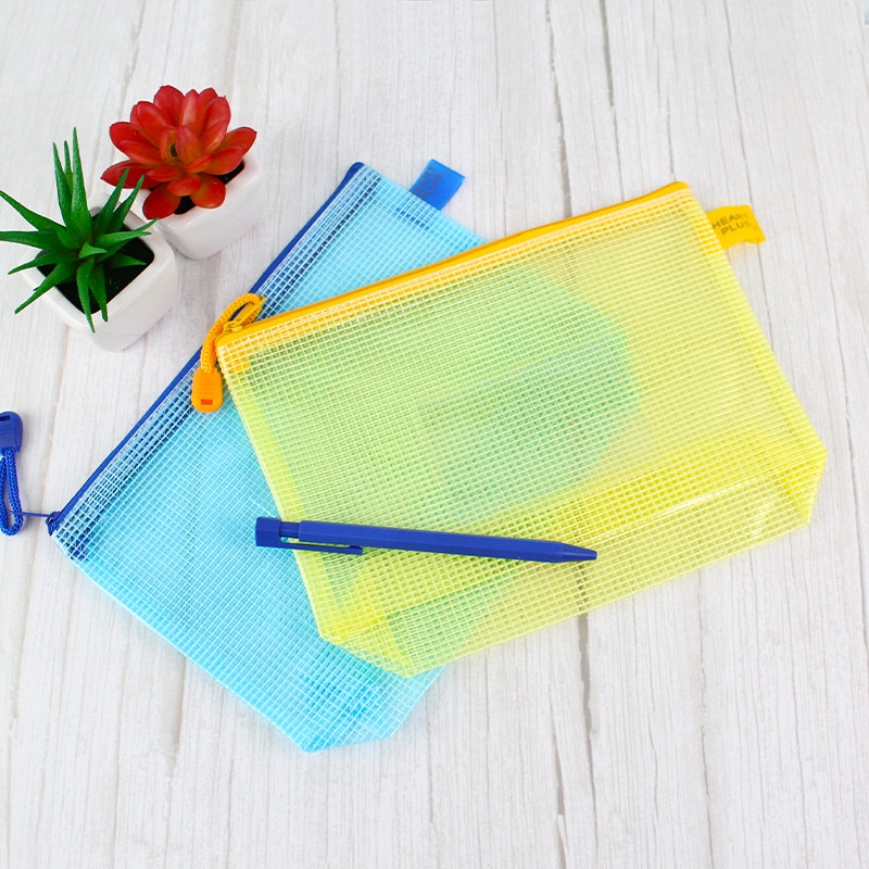 A5 Multifunctional Grid Line Zipper Bag/Plastic Wallet/Translucent Waterproof Pouch/Document Storage Bag