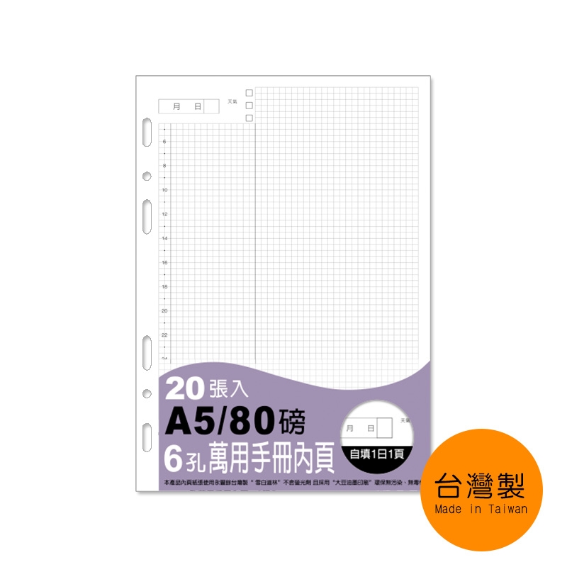 A5 6 Hole Undated Daily Planner (One Page Per Day)/Personal Organizer Refill/Refillable Journal/20 Sheets