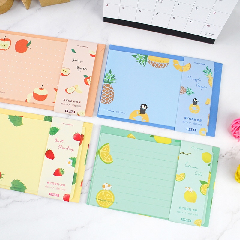 The set contains 4 envelopes and 8 sheets of letter paper.