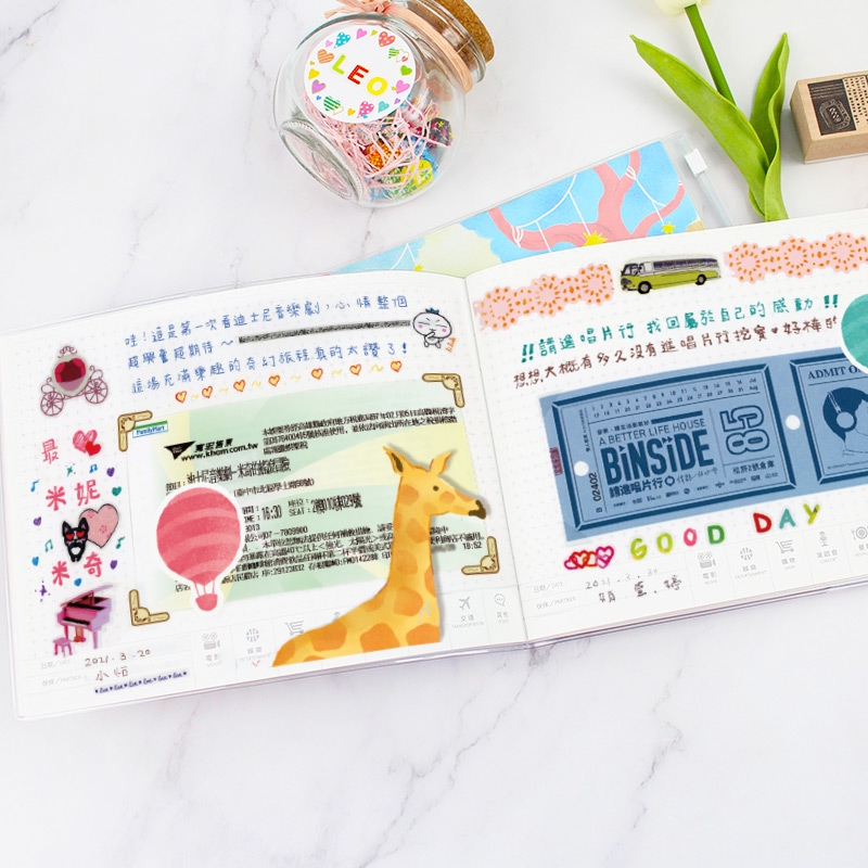 You can stick the tickets of movies, concerts, museums, amusement parks on the collection book and write down your mood and memory.