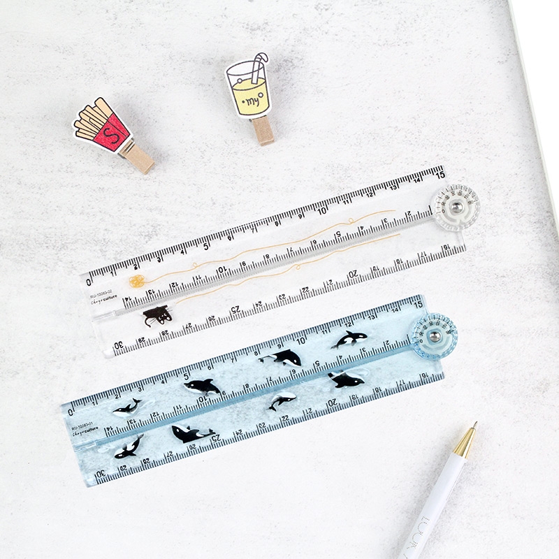 Has 180 degree protractor function for measuring angles easily. 15 degrees per unit.