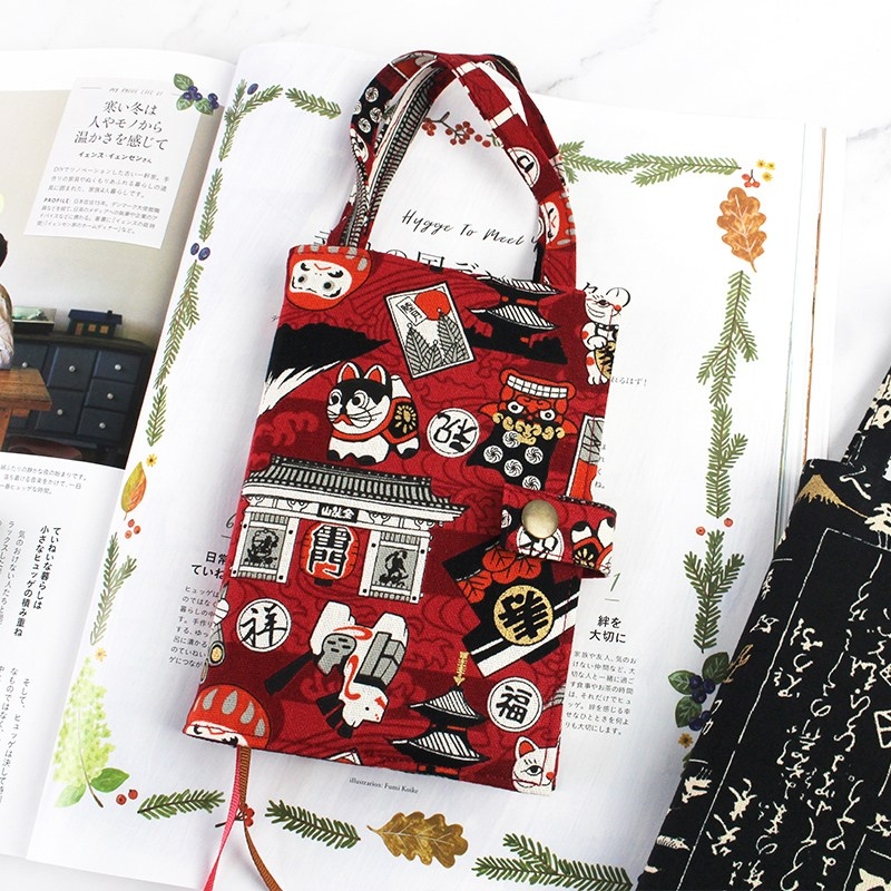 A6 Taiwan Made Fabric Top Handles Fitted Book Sleeve with Buckle Closure/Portable Handmade Book Cover/Protector (Limited)