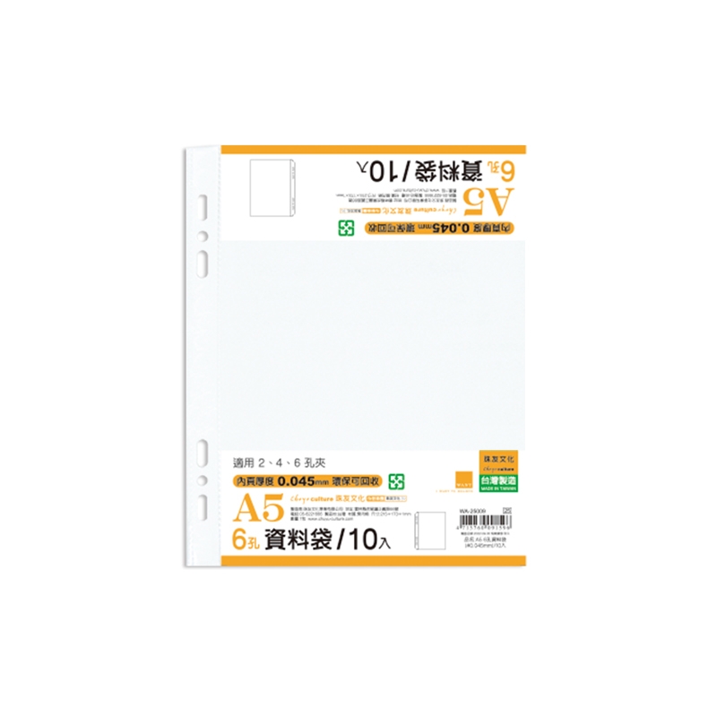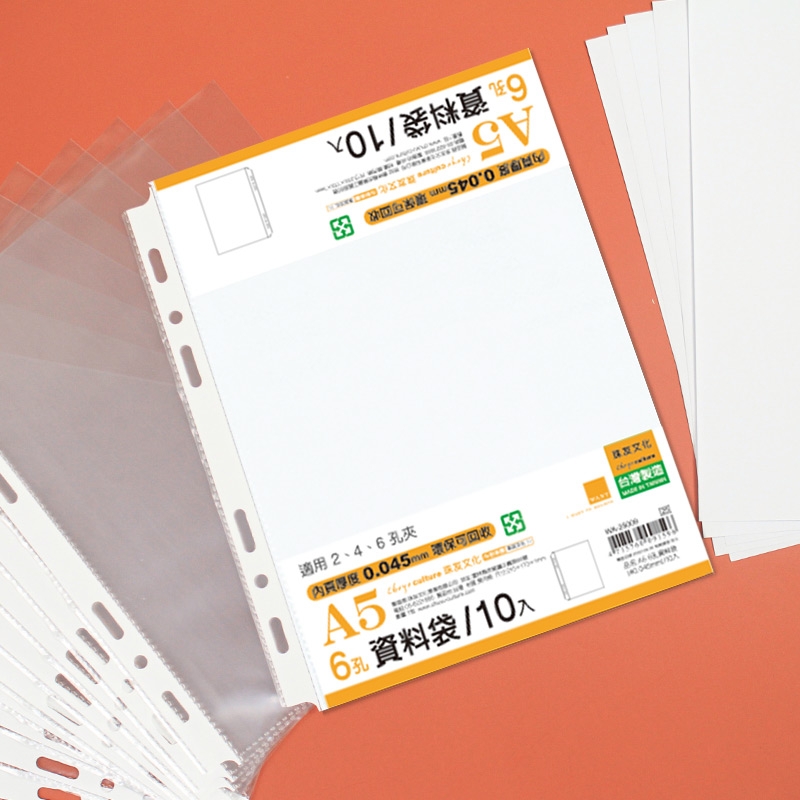 A5 6 Hole Clear Top-loading Punched Pocket 45 Micron/Top Opening Sheet Protector/10 Pockets for 2, 4, 6-ring Binder
