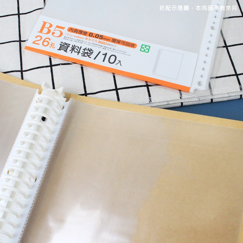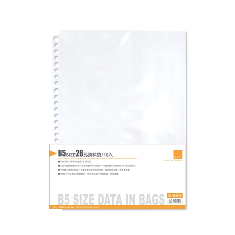 WANT B5/18K 26孔資料袋10入/資料收納/文件收納/活頁透明內袋/適用2.26夾-0.05mm/10入(適用2.26孔夾)