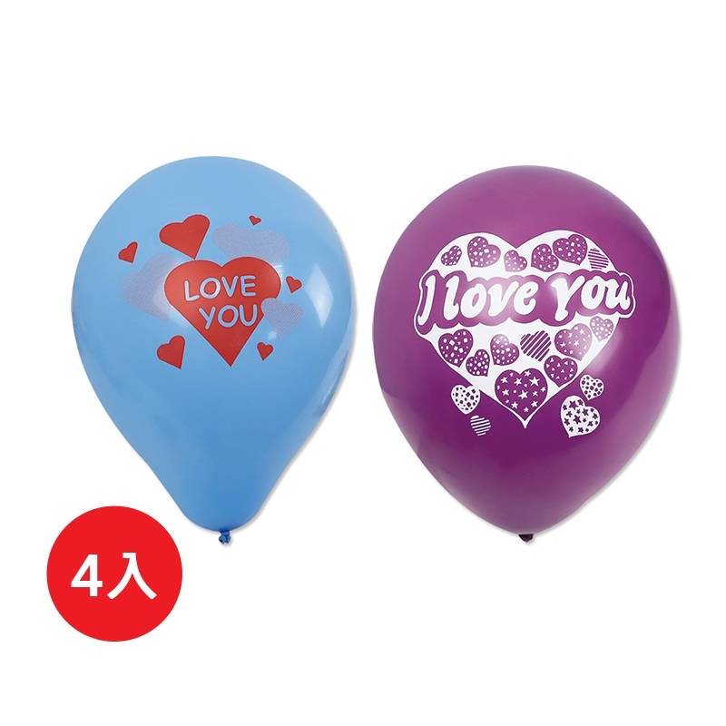 Taiwan Made 10 Inch I Love You Print Multicolor Round Natural Latex Balloon/Wedding Balloon/Party Balloon/4 Pcs