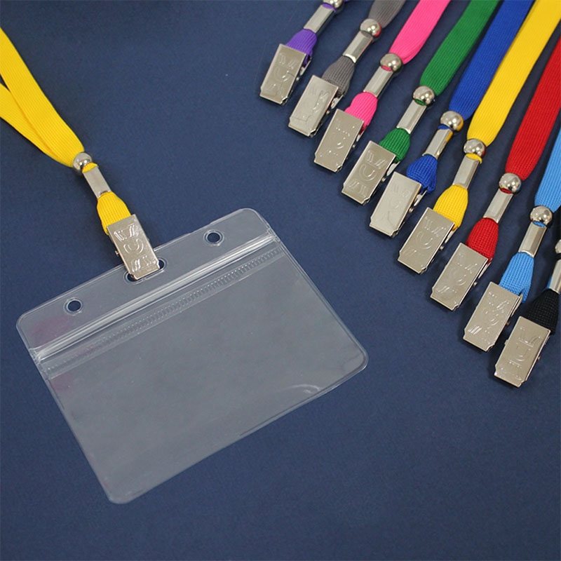 The set includes a clear PVC card holder and a adjustable lanyard.