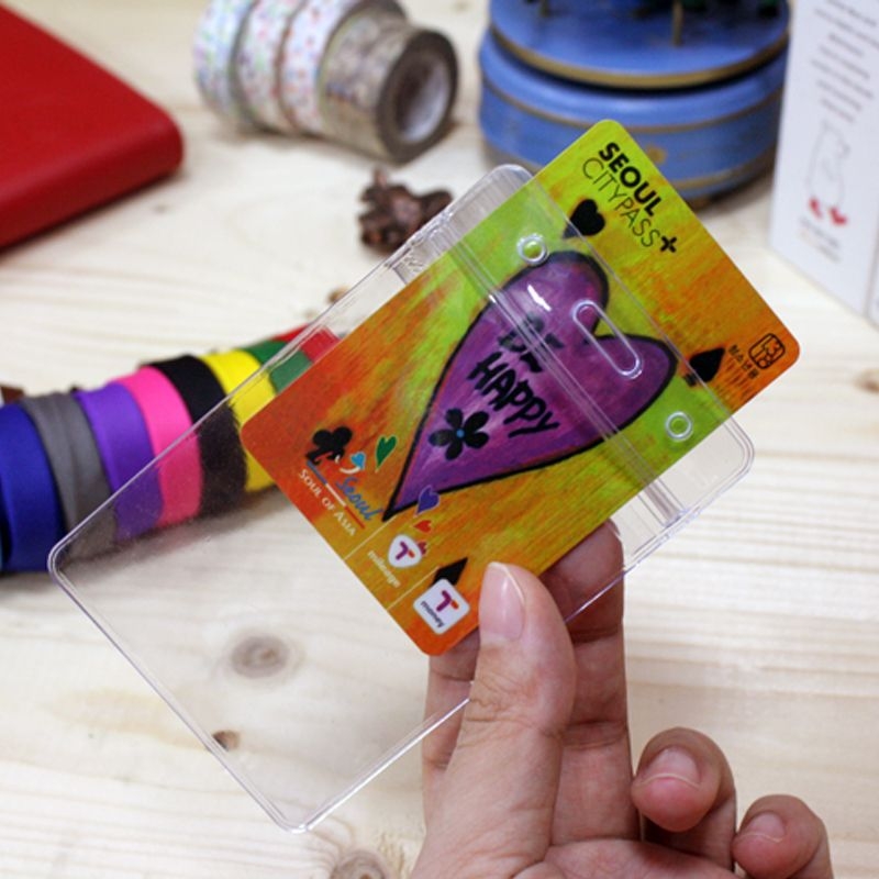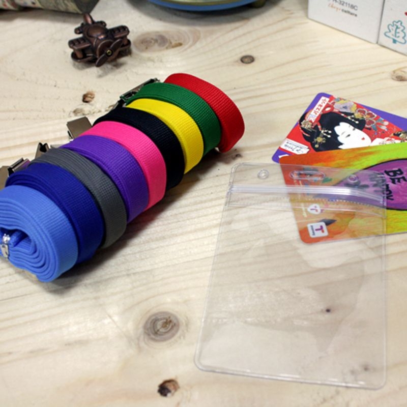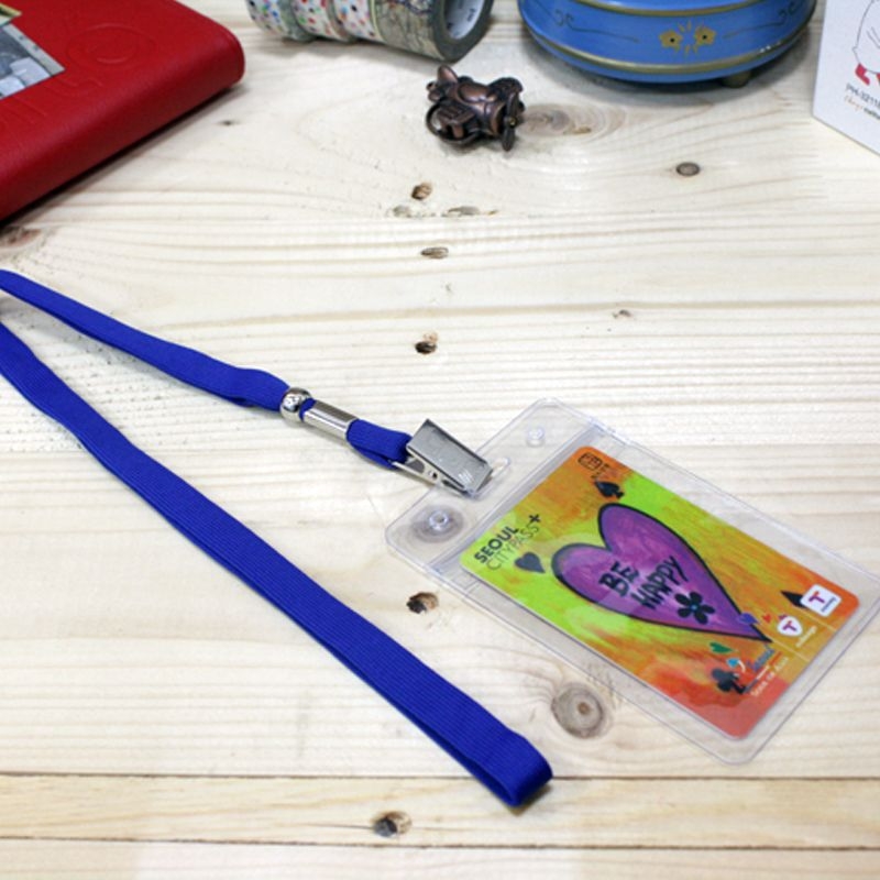 The set includes a clear PVC card holder and a adjustable lanyard.