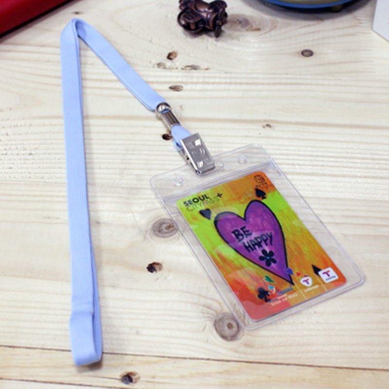 The set includes a clear PVC card holder and a adjustable lanyard.