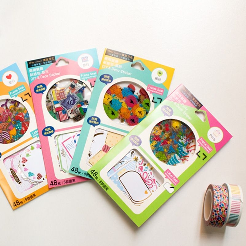Two-Way Decorative Sticker Set/Waterproof Border Sticker/Label/Memo/Gift Card/Diary Accessories/DIY Craft/Pack of 48 Pcs