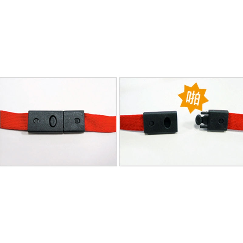 The lanyard has a safety buckle that is detachable if pulled. It is a security mechanism for some people who need to operate machines.