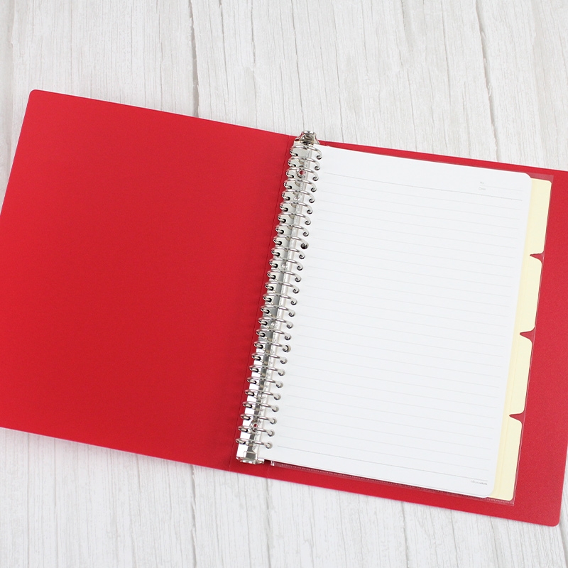 The notebook Includes 20 loose-leaf papers, 4 classified index cards and 1 sheet protectors.