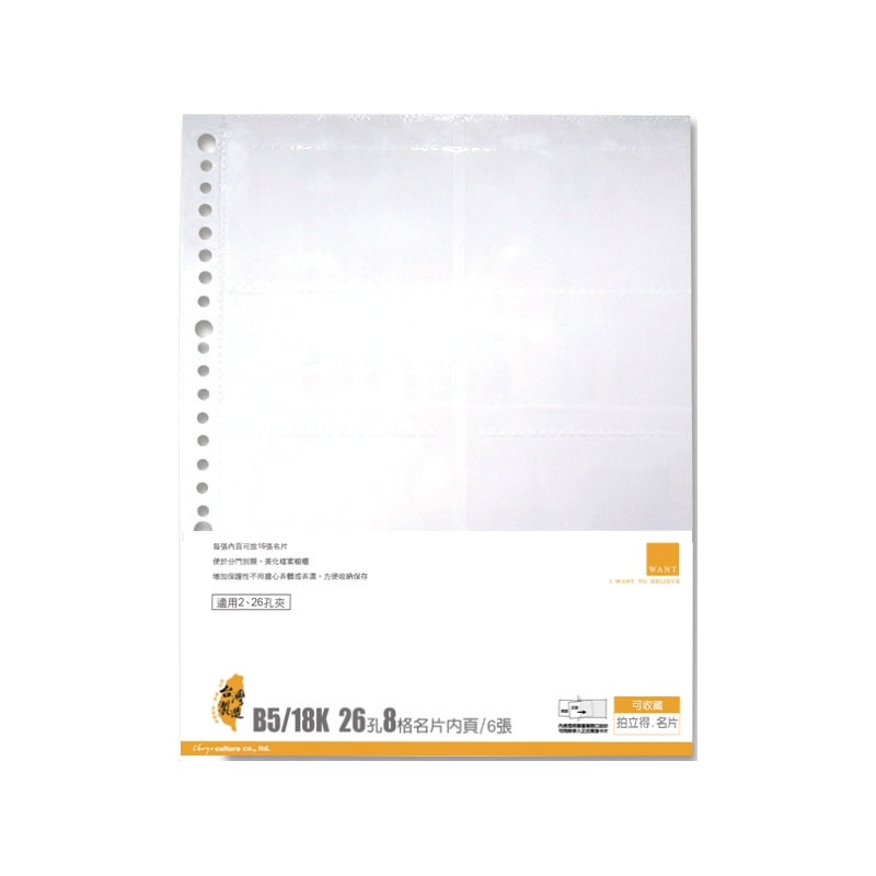 B5 26 Hole Business Card Refill 8 Pocket 6 Sheets/Name Card Pockets/Mini Polaroid Album Refill for 2, 4, 26-ring Binder