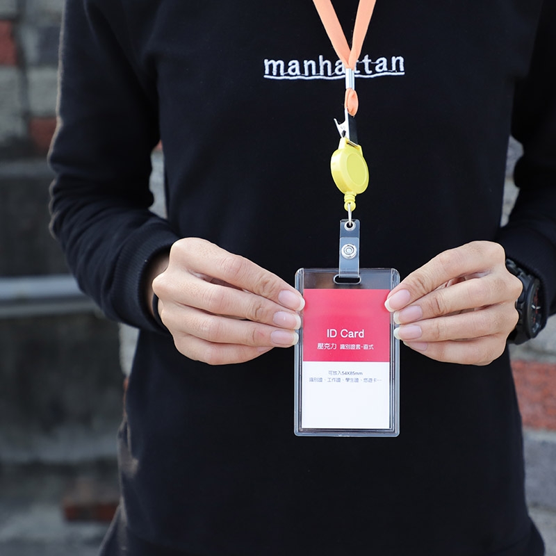 Able to go with a neck lanyard strap, retractable badge reel or spring coil cord.