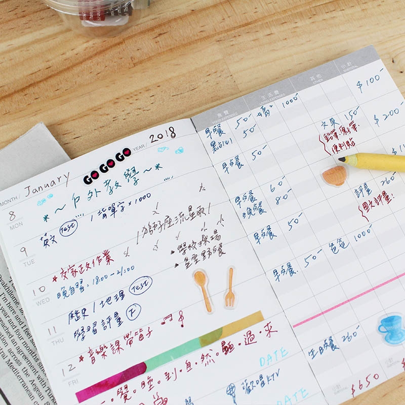 A6/50K Undated Weekly Planner With Cash book/ Diary/ Journal/ Schedule book/ Agenda ( Fit for fountain pen)