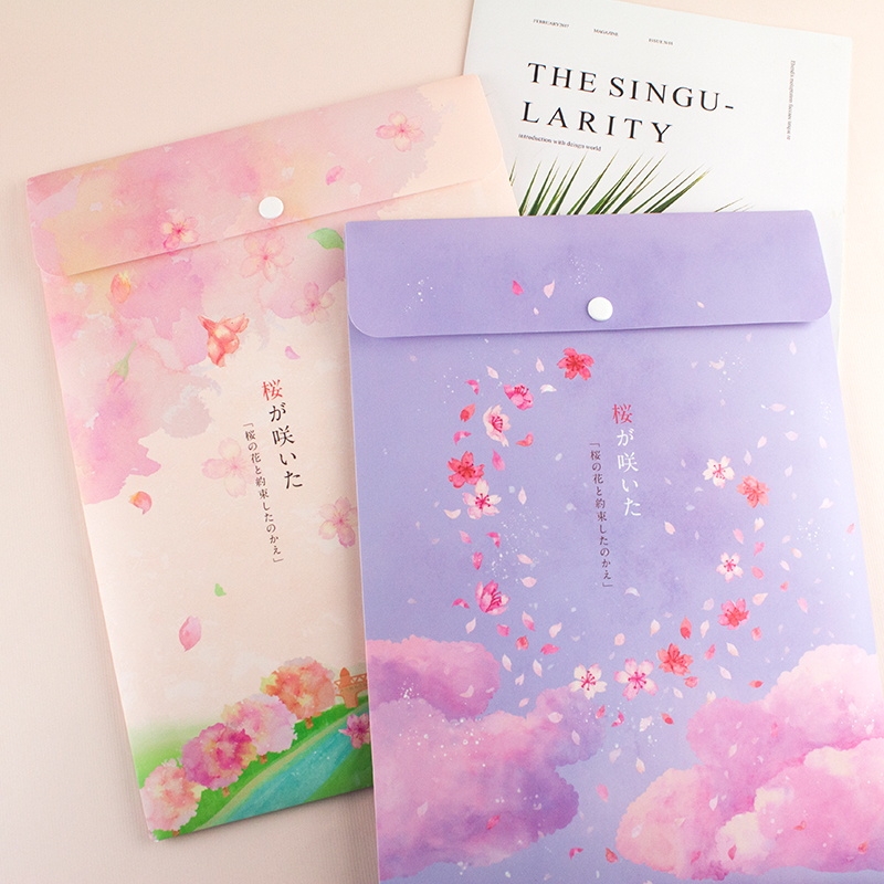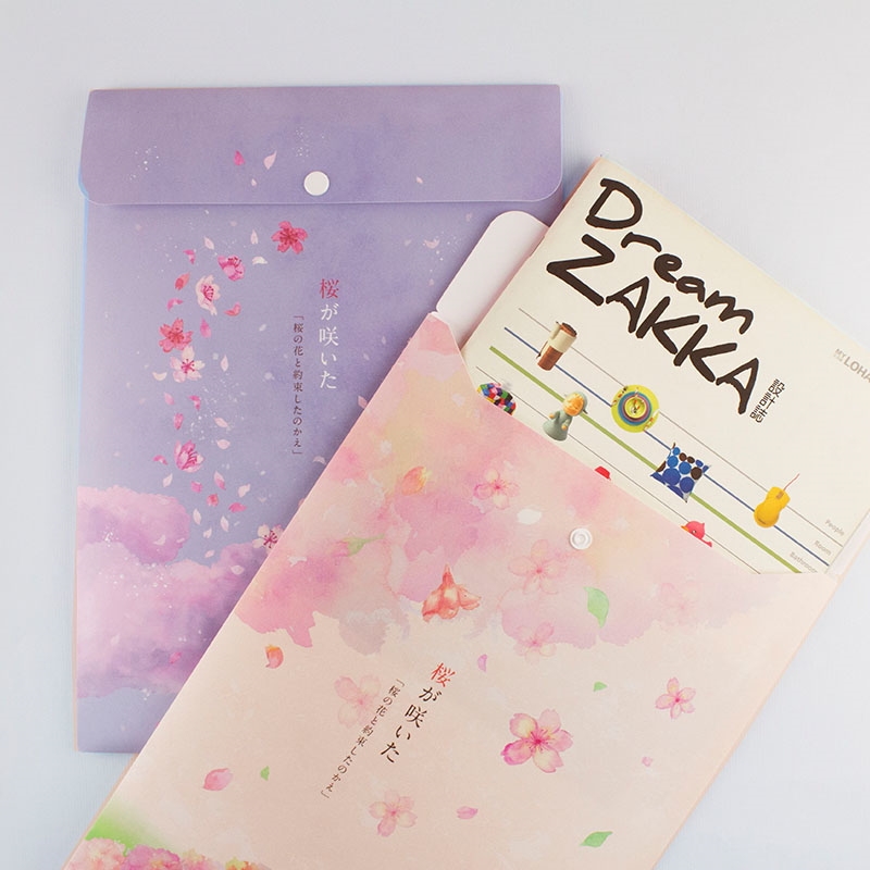 Sakura PP Material Envelope Folder with Snap Button/File Envelope/Ticket Holder/Mask Storage Bag