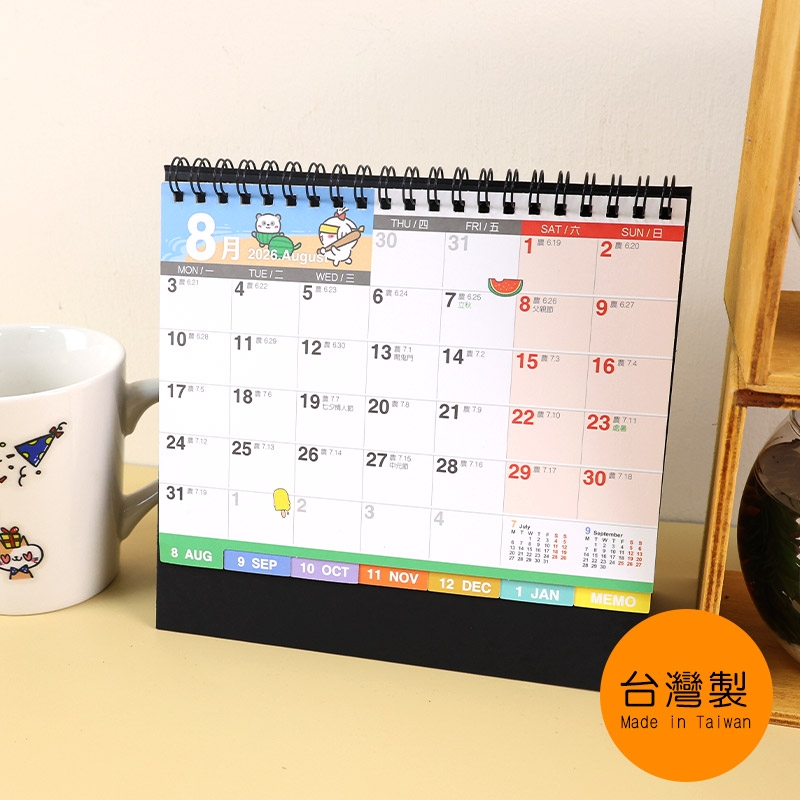2026 B6 Index Divider Standing Flip Calendar/Desk Calendar with Twin-Wire Binding/Desktop Calendar