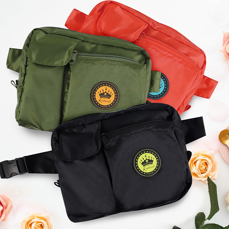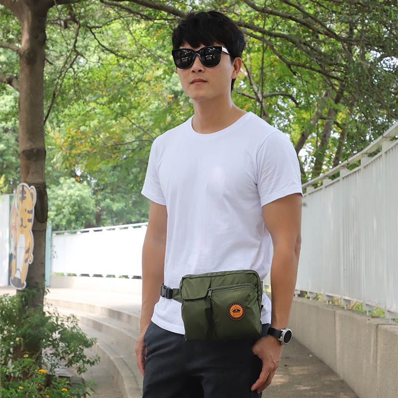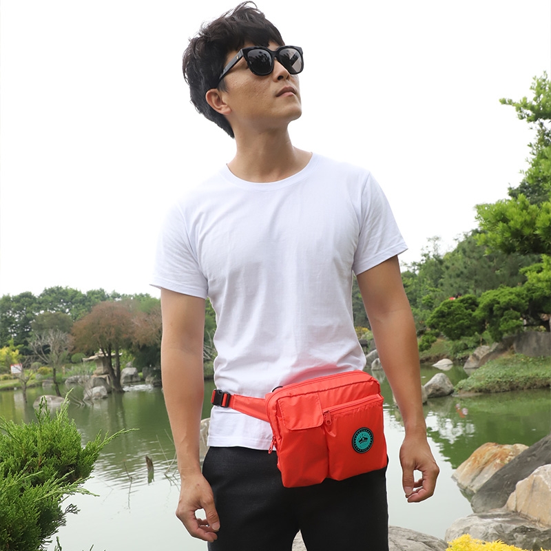 - Multiple pockets design. The bag contains two front pockets, a back pocket for storing the weist strap and a interior pocket in the middle. The back side with two rings can go with a shoulder strap.