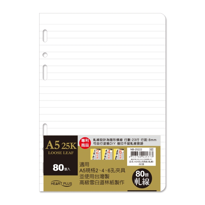 A5 6-Hole Loose Leaf Paper/Refill Paper (Scoring Lined/80 gsm)/80 Sheets for 2, 4, 6-ring Binder