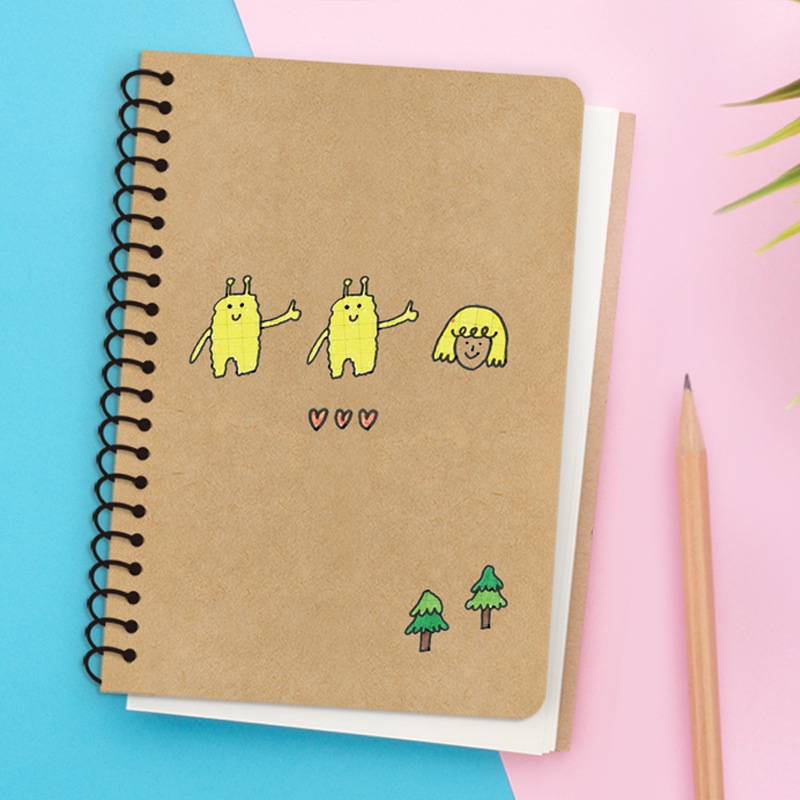 72K Kraft Paper Cover Wirebound Notebook (Ruled/Lined)/Plain Kraft/80 Sheets