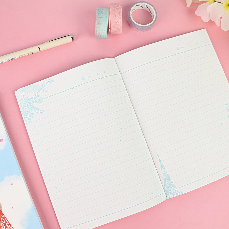 Ruled pages help you write regularly. Each page has Sakura patterns.