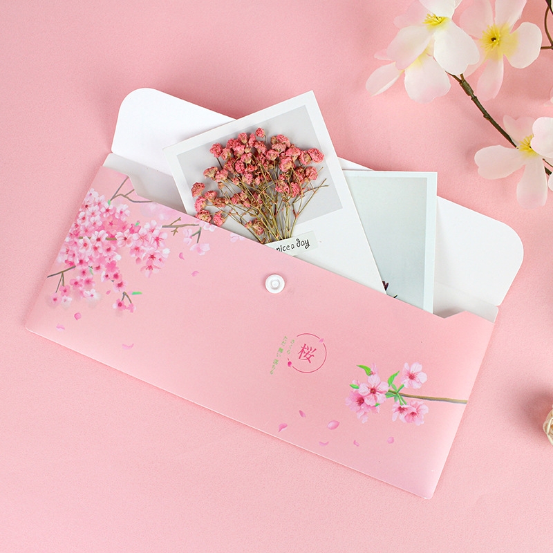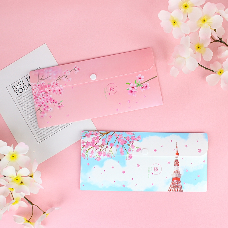 Sakura PP Material Envelope Folder with Snap Button/File Envelope/Ticket Holder/Mask Storage Bag