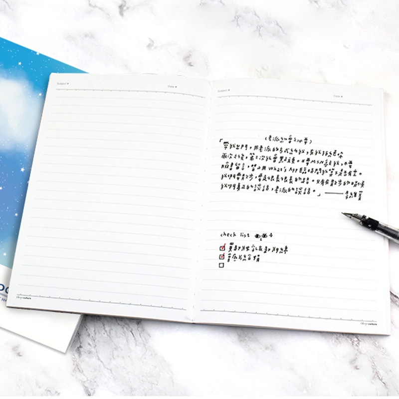 Made of 100 gsm Snow White Bit-Coated Woodfree Paper that provides a smooth writing experience and is applicable to most of fountain pens and watercolor pens. Reminder: the product cannot assure that application for all kinds of fountain pens.