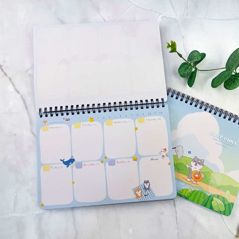 A5/25K圈裝上翻週計劃本/52週計劃本/可撕式/自填式週誌/備忘錄/便籤本/讀書計劃/待辦事項/可愛插畫-53張