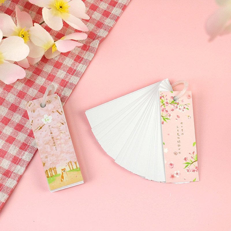 Sakura Study Card with Plastic Ring (Blank/8.5 x 3cm)/Flash Card/Revision Card/Carrying Note Pad/Memory Word Card/Vocabulary Record Books/80 Sheets
