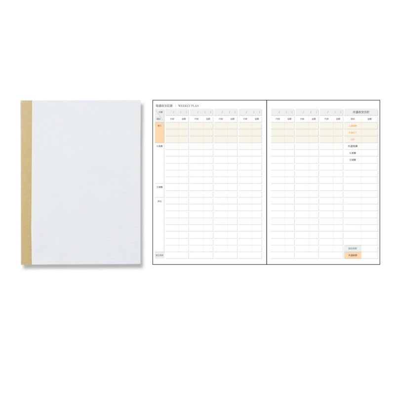 - The cash book contains an month monthly planner, weekly income and expenditure records, monthly settlements, annual settlements, note pages, and other functional pages.