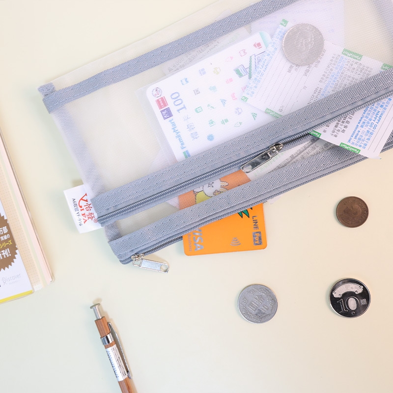 A6 Portable Double Layer Mesh Bag/ Mesh Zipper Pouch/ Document Organizer