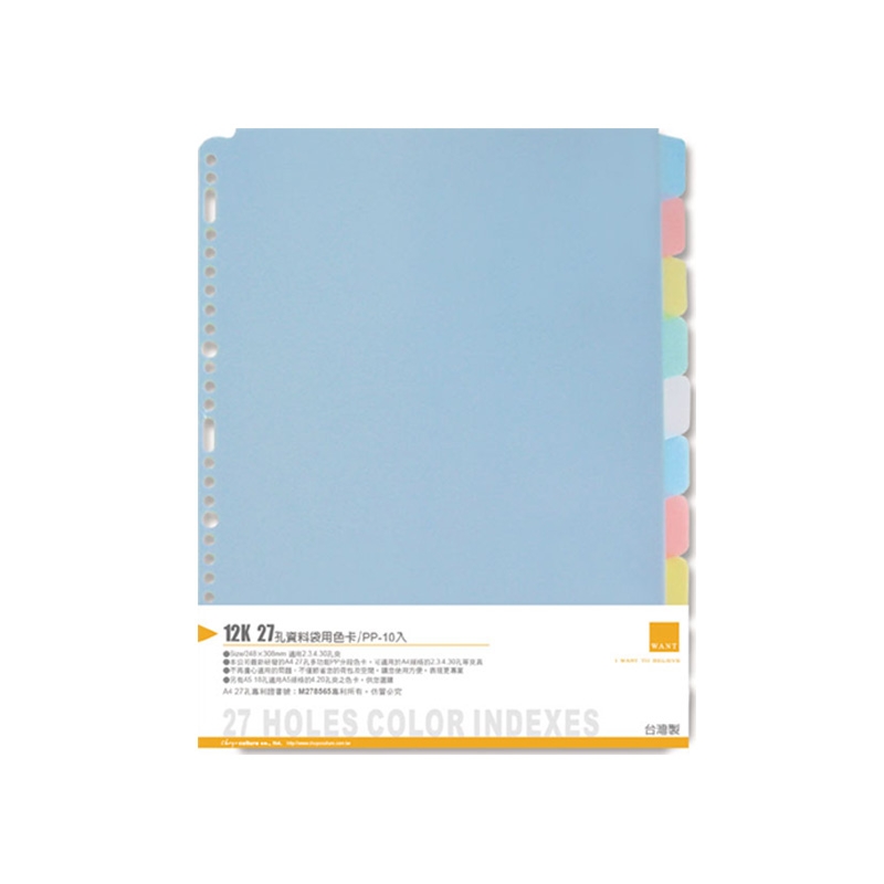 12K Colorful 27 Hole PP Index Divider with 10 Tabs/Subject Divider/Punched File Card Divider/10-Tab Binder Divider for A4 Size 2, 3, 4, 30-ring Binder