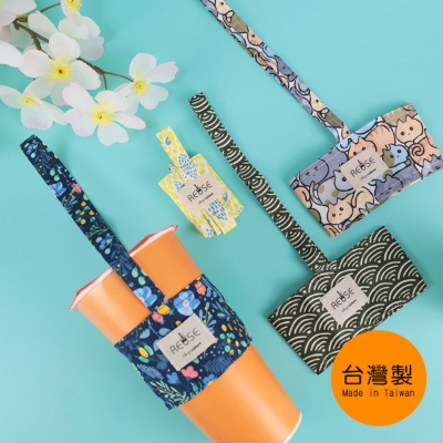 台灣花布飲料杯提袋-可調式杯套飲料杯提袋/減塑行動環保杯套/手提飲料袋/飲料杯袋