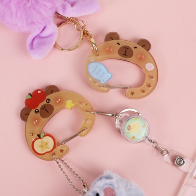 壓克力水豚造型扣環/壓克力掛件配飾/包包吊飾/鑰匙扣吊飾/療癒小物掛飾/痛包扣/個性扣環/水豚圖案