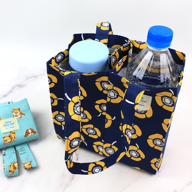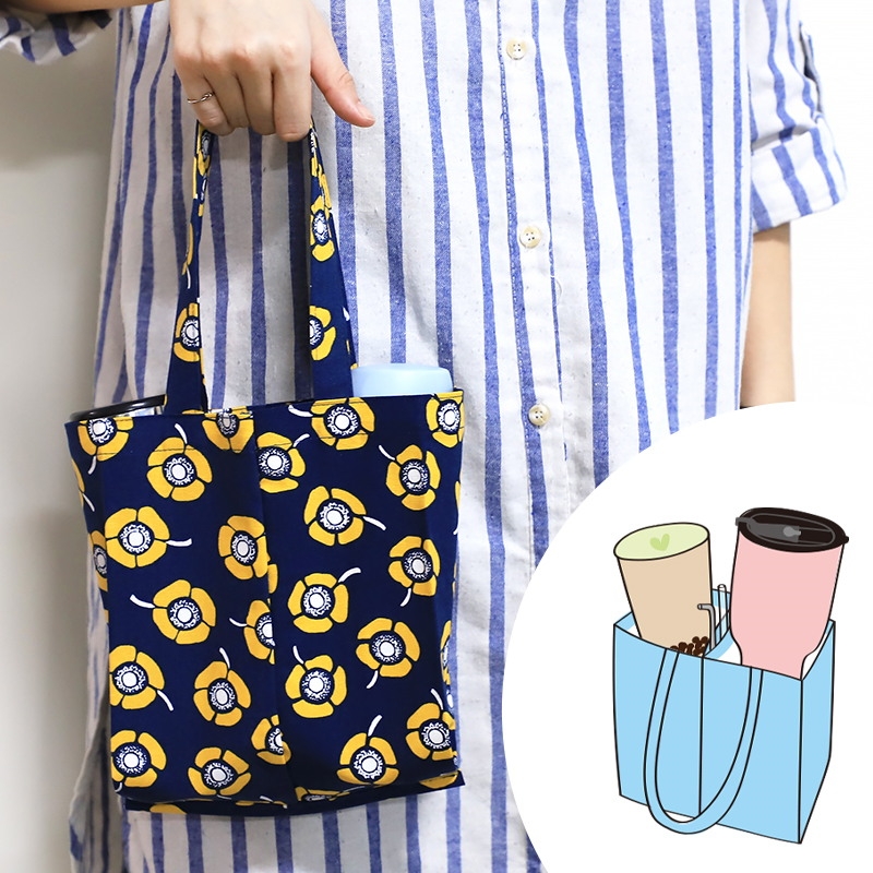 【網路限定】台灣花布雙杯套飲料杯提袋/提把飲料袋/減塑行動環保杯套/手提飲料袋/飲料杯袋
