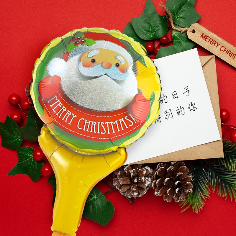 派對佈置-手拿聖誕老公公氣球/耶誕場景裝飾/耶誕會場佈置/聖誕布置/鋁箔氣球
